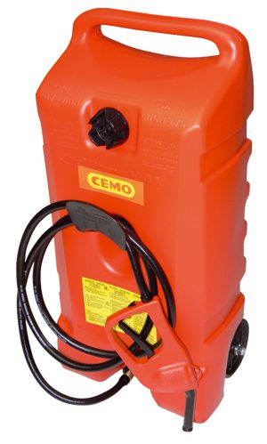 Kraftstoff-Trolley 53 l aus HD-PE mit Rädern und Handgriff, mit Zapfpistolenpumpe und Zapfschlauch, mit UN-Zulassung für Kraftstofftransport